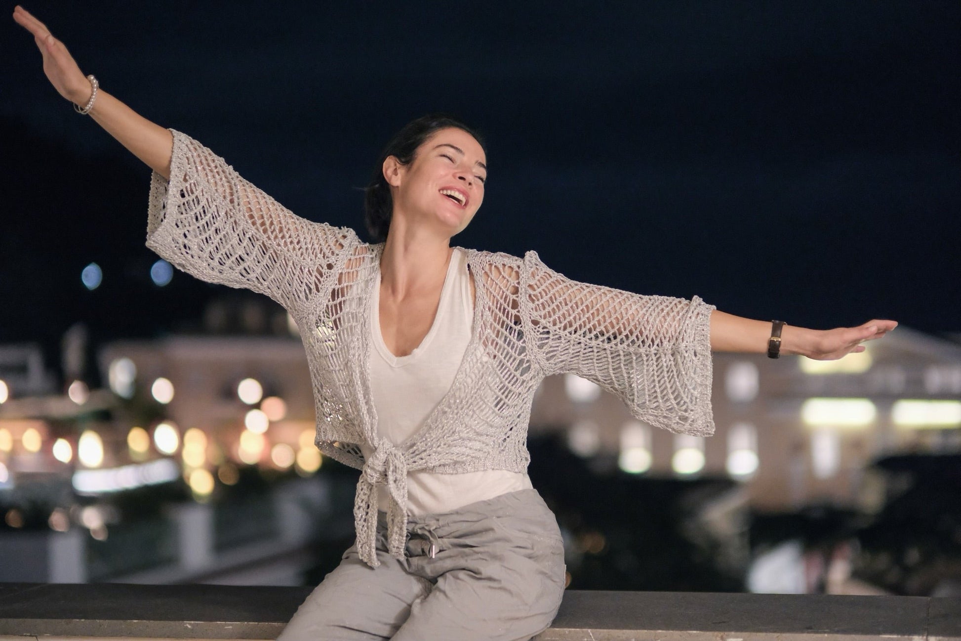 This crochet tie-front top brings a blend of boho detail and modern flair.