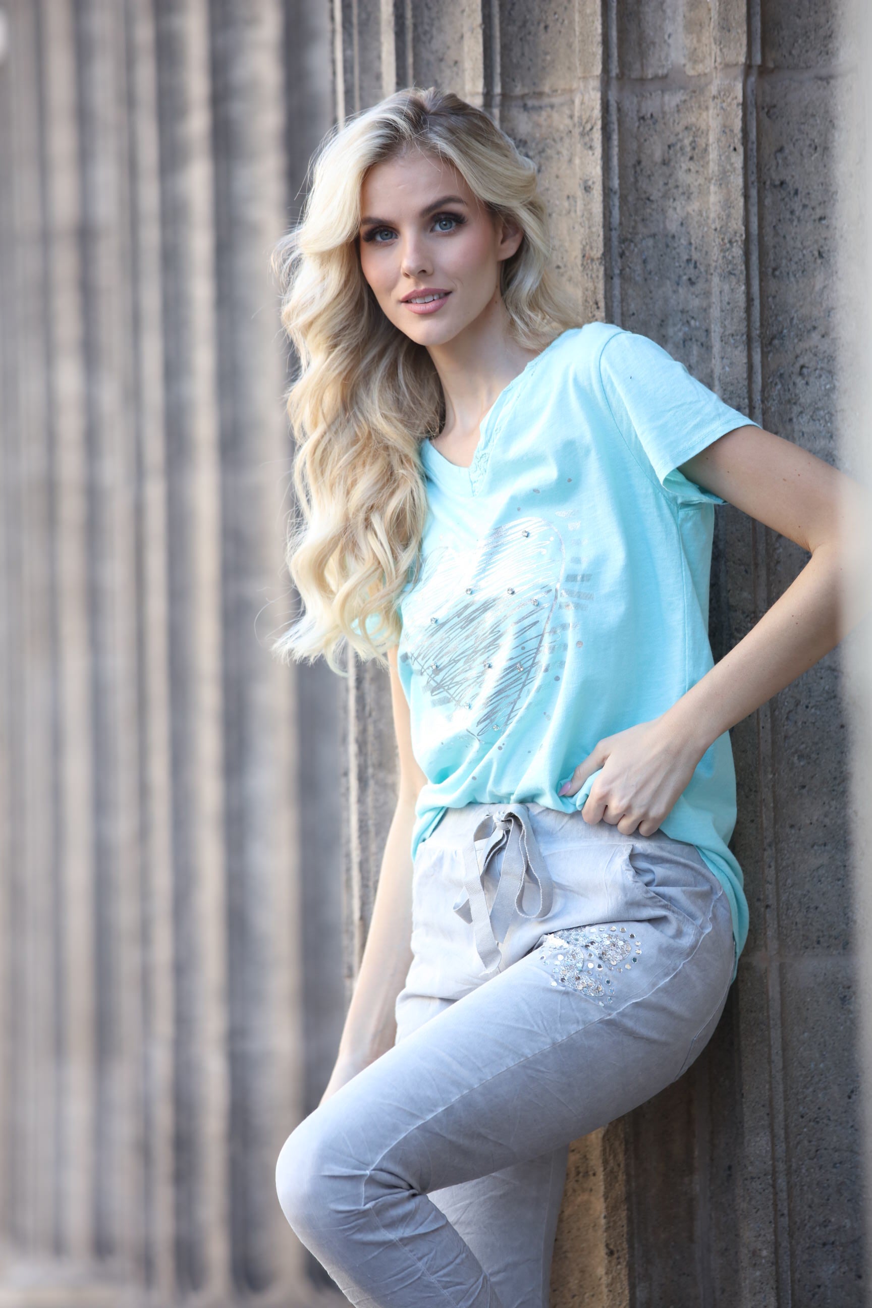 Glitz Heart Solid Stretch Pants