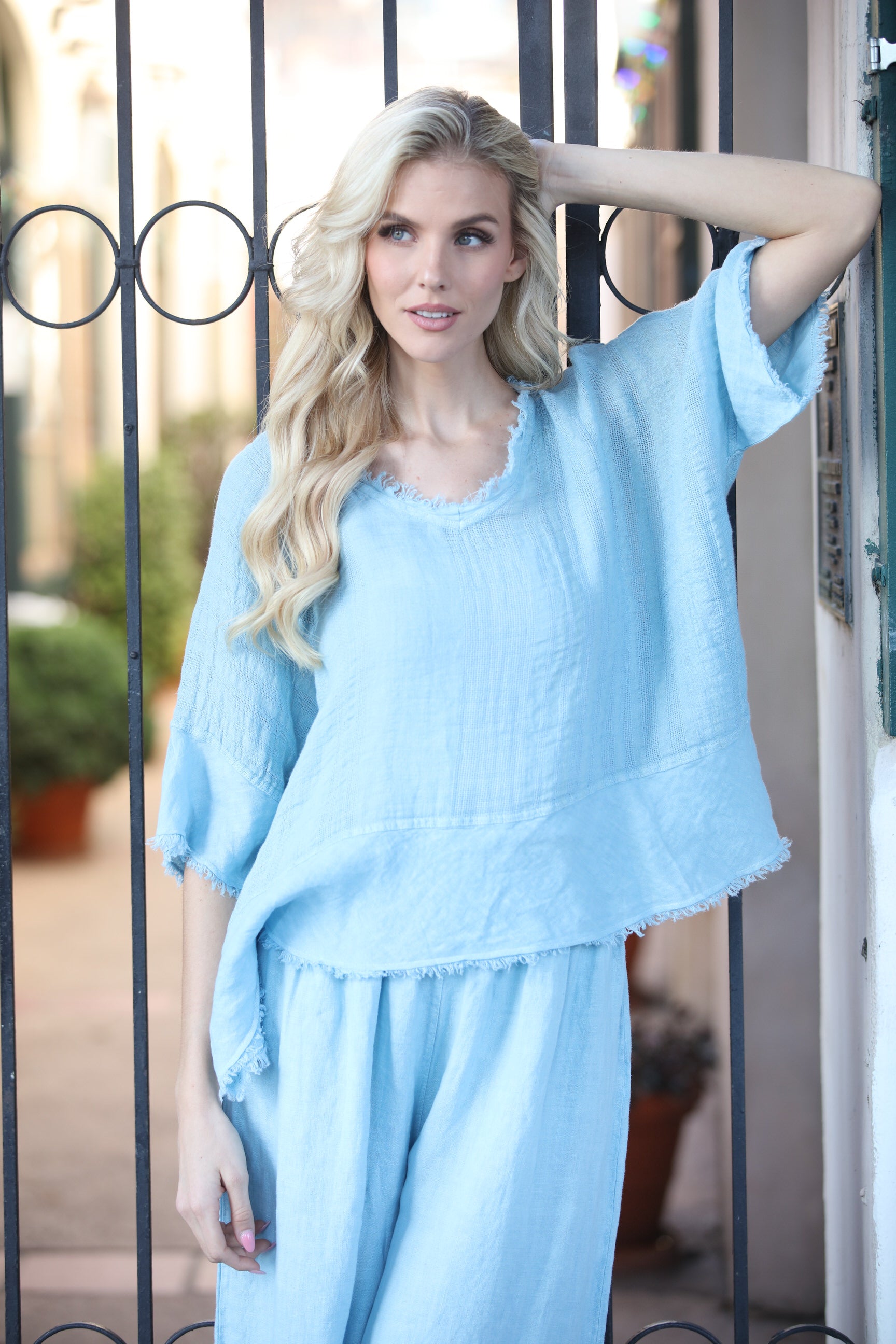 Crafted from premium linen, this versatile top delivers effortless style with breathable comfort. The relaxed fit and natural fabric drape create an understated elegance perfect for warm weather dressing. Whether layered for cooler evenings or worn solo on sunny days, this piece transitions seamlessly from casual outings to relaxed social gatherings. The lightweight linen construction ensures you stay cool while maintaining a polished, contemporary look that works season after season.